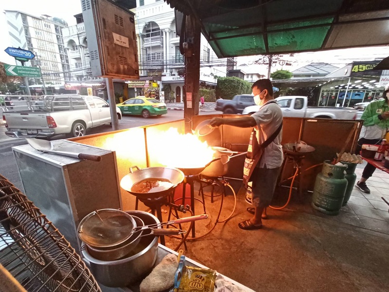 “ร้านชื่อ ‘ข้าวต้มโต้งรุ่งผักบุ้งโชว์’ เปิดมาเกือบจะยี่สิบปีแล้วครับ ตั้งอยู่ลาดพร้าววังหิน 30 เบอร์โทรสั่งอาหาร 095-493-1741 ส่วนมากลูกค้าที่สั่งจะให้ LINEMAN มารับ เมนูเด็ดที่ลูกค้ามาต้องสั่งก็มียำปลาสลิด, ผัดหอยลาย, ปลากระพงทอดน้ำปลา, ปลาสามรส, ต้มยำเนื้อปลาน้ำใส, แขนงหมูกรอบ, กุยช่ายขาวเต้าหู้หมูสับครับ ที่ทำคนเดียวเพราะที่มันแคบเลยทำคนเดียว จากสถานการณ์โควิดที่ผ่านมาก็ขายทุกวันแต่ลูกค้าสั่งไปทานที่บ้านเอา แต่มีลดพนักงานลงเพราะร้านเปิดไม่ได้แต่ก่อนเด็กเสิร์ฟเยอะตอนนี้เหลืออยู่ 3-4 คน ตอนนี้โควิดระบาดอยู่แต่พอมีคนละครึ่งก็พออยู่ได้ครับ ในส่วนของเมนูอาหารบางครั้งลูกค้าอยากทานเมนูไหนสั่งเราก็ทำให้ครับ คือลูกค้าอยากทานอะไรก็ทำให้ ทุกวันนี้กลับมาเปิด 5 โมงเย็นถึงเที่ยงคืนเหมือนเดิมครับ”