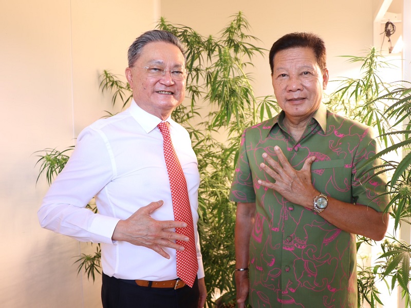 “ผมยินดีที่วันนี้ วันที่ 9 มิถุนายน 2565 หรือ ที่เราเรียกว่า 609 ก็ขอให้เป็นนิมิตหมายที่ดีของคนไทยที่ภูมิปัญญาของคนไทย ตั้งแต่รุ่นปู่ย่า ตายายของเรา ซึ่งเคยมีตำนานเล่าขาน ยุคสมัยรัชกาลที่ ๔ มีการส่งออกกัญชาไทย ณ แหลมผักเบี้ย ซึ่งในอดีตจังหวัดเพชรบุรีคือแหล่งส่ง Thai Stick กัญชาสายพันธุ์ไทยแท้ จึงหวังว่ากัญชาไทยจะได้กลับมาสร้างประโยชน์ สร้างมูลค่า ปักหมุดกัญชาไทย สร้างรายได้กับพี่น้องประชาชน เพื่อพัฒนาทางการแพทย์ เศรษฐกิจสังคมส่วนรวมและประเทศชาติต่อไป