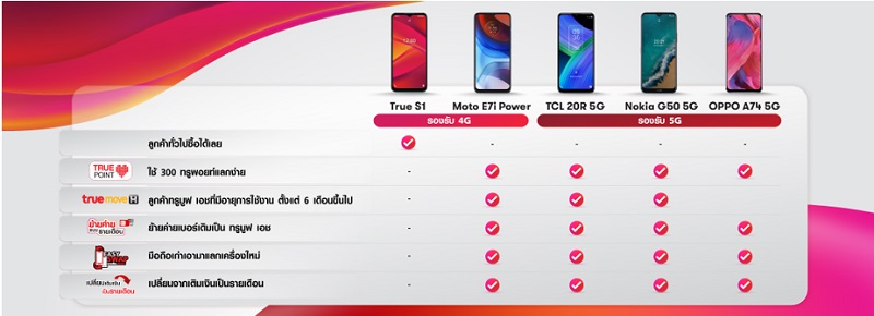 สำหรับมือถือรุ่นที่ร่วมรายการ ทั้งเครือข่าย 5G และเครือข่าย 4G มีดังนี้