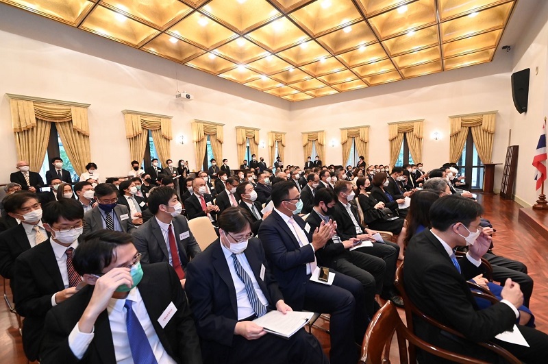นายคาซูยะ นาชิดะ เอกอัครราชทูตญี่ปุ่นประจำประเทศไทย เปิดเผยว่า “ในฐานะเอกอัครราชทูตญี่ปุ่นในประเทศไทย ผมมีความยินดีเป็นอย่างยิ่งที่ได้มีโอกาสเปิดบ้านต้อนรับกลุ่มนักลงทุนทั้งชาวไทย และชาวญี่ปุ่นให้มาทำความรู้จักกันจำนวนมากในวันนี้ ประเทศเราทั้งสองมีความสัมพันธ์ที่ดีด้านการค้าการลงทุนกันมาอย่างช้านาน ปัจจุบันมีบริษัทญี่ปุ่นในประเทศไทยกว่า 6,000 บริษัท ปีนี้ มีบริษัทญี่ปุ่นในไทยหลายบริษัทที่มีการจัดงานครบรอบ 50 ปี 60ปี แสดงให้เห็นถึงความเป็นศูนย์กลางฐานการผลิตขององค์กรสัญชาติญี่ปุ่นอย่างแท้จริงของประเทศไทย แต่ภายใต้การเปลี่ยนแปลงทางภูมิรัฐศาสตร์ในปัจจุบัน รวมทั้งขนาดของธุรกิจสัญชาติไทยที่ขยายตัวตามขนาดของเศรษฐกิจของประเทศในช่วงหลายสิบปีที่มีผ่านมา ทำให้สภาพแวดล้อม และกฎกติกาต่างๆ ในการดำเนินธุรกิจ เปลี่ยนไปโดยสิ้นเชิง ดังนั้น ญี่ปุ่นเองก็ควรปรับตัวให้ทันกับการเปลี่ยนแปลง ซึ่งทางโครงการ TJRI ได้พยายามส่งสัญญาณเตือนถึงความเสี่ยงในอนาคตให้กับบริษัทญี่ปุ่นในไทยมาโดยตลอด ซึ่งผมเองก็เห็นพ้องกับทางโครงการ จึงได้ร่วมกันจัดงานในวันนี้ให้เกิดขึ้น ซึ่งหวังว่าเอกชนที่ได้มาพบปะรู้จักกันในวันนี้จะนำโอกาสนี้ไปขยายผล และสร้างให้เกิดความร่วมมือกันในรู้แบบ Co-Creation เพื่อการเติบโตอย่างมั่นคง และยั่งยืนของทั้งสองประเทศต่อไป”