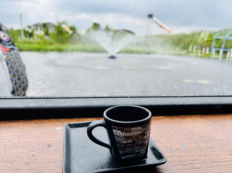 ที่นี่เป็นทั้งร้านอาหารและร้านกาแฟคาเฟ่ในสวนริมบึงน้ำ ซึ่งมีปลาคาร์ฟและปลานานาชนิด มีบัวสวยสวยรวมทั้งบัวกระด้งก็ด้วย นั่งกินข้าว ดื่มกาแฟหรือเครื่องดื่มอื่นๆ สารพัดรายการให้เลือกในบรรยากาศร่มรื่นและอากาศเย็นๆเคล้าลมหนาวพัดมาเบาๆ แหม! เอาสิครับ ความสุขง่ายๆ แบบนี้ใครๆ ก็คงชอบเหมือนผมนะครับ