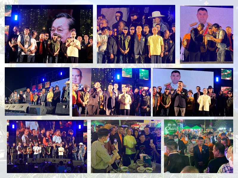 มาถึงช่วงค่ำ อีกหนึ่งไฮไลค์ของงานที่ทุกคนรอคอย กับฟรี! คอนเสิร์ตจากศิลปินระดับแถวหน้าของประเทศ นำโดย แอ๊ด คาราบาว ศิลปินแห่งชาติ มาเต็มสูบพร้อมวง น้าหงา คาราวาน อ.พยัพ คำพันธุ์ และไผ่ร้อยกอ บ่าววี อาร์สยาม ประทีป ขจัดพาล ฟ้า ขวัญนคร แจ๊คธนพล เสเบ็นซ์ รุ่งสว่าง และน็อต ไผ่ร้อยคอ มาร่วมสร้างสีสันความบันเทิงตลอด 10 ชั่วโมงเต็ม อิ่มอร่อยกับซุ้มอาหารปักษ์ใต้บ้านเรา เครื่องดื่มช้าง ผู้สนับสนุนหลัก และบูธแสดงสินค้าของเพื่อนพี่น้องไบค์เกอร์ มาร่วมเติมเต็มให้งานสมบูรณ์ บรรยากาศอบอวลไปด้วยมิตรภาพ ความอบอุ่น ของมวลมิตรพันธมิตรจากทุกวงการ ทั้งศิลปิน แพทย์ วิศวกร นักการเมือง วงการพระเครื่อง วงการยีนส์ วงการคาวบอย วงการไบคเกอร์ ที่มาร่วมงาน ”ตอบแทนแผ่นดินบ้านเกิด” อย่างยิ่งใหญ่ในครั้งนี้