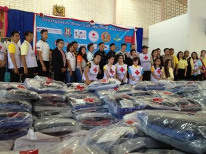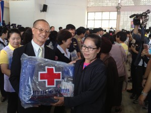 พร้อมกันนี้ ยังมอบเครื่อทำน้ำเย็น ตู้ยา พร้อมยา เวชภัณฑ์ และ ชุดอุปกรณ์กีฬา แก่ผู้แทนจากอำเภอทั้ง 3 แห่ง