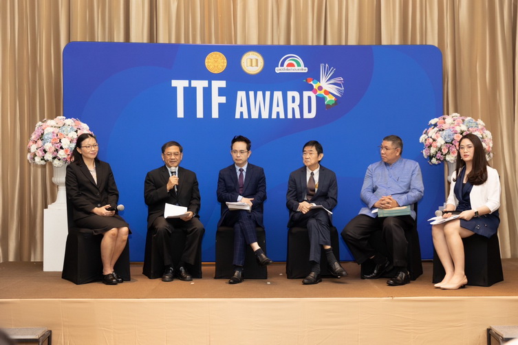 การสนับสนุน และส่งเสริมผลงานทางวิชาการ เป็นต้น โดยรางวัล TTF Award เป็นความภาคภูมิใจของมูลนิธิฯ ที่ได้เป็นส่วนหนึ่งในการสนับสนุนและเป็นกำลังใจให้นักวิชาการไทย โดยเฉพาะในช่วงปีที่ผ่านมา ซึ่งเป็นช่วงที่ทั่วโลกต้องเผชิญกับความท้าทายนับไม่ถ้วน อาทิ ปัญหาสิ่งแวดล้อม โรคระบาด การเปลี่ยนแปลงทางนวัตกรรมและเทคโนโลยี ฯลฯ โดยผลงานทางวิชาการที่ได้ถูกจัดทำขึ้นจากการอุทิศตนค้นคว้าผลงานเพื่อยกระดับมาตรฐานงานวิชาการนั้น จะสามารถเป็นรากฐานในการแก้ไขปัญหา รวมถึงสามารถนำไปประยุกต์ใช้เพื่อแก้ปัญหาต่างๆได้จริงเป็นเสมือนแหล่งข้อมูลขนาดใหญ่ อันจะนำไปสู่องค์ความรู้ที่เป็นประโยชน์ต่อการพัฒนาประเทศในด้านต่างๆ โดยผลงานวิชาการดีเด่นที่ได้รับรางวัลเหล่านี้ ได้มีการเผยแพร่สู่สาธารณชนไปแล้วกว่า 60 เล่ม เพื่อเป็นแหล่งข้อมูลศึกษาหาความรู้ และเป็นประโยชน์ต่อผู้ที่สนใจ มูลนิธิฯ หวังเป็นอย่างยิ่งว่ารางวัล TTF Award จะเป็นแรงผลักดันให้นักวิชาการไทยสร้างสรรค์ผลงานใหม่ๆ ที่ทรงคุณค่าเท่าทันยุคสมัย ขับเคลื่อนให้เกิดสังคมแห่งความรู้และการพัฒนาคุณภาพผลงานทางวิชาการ อันจะนำไปสู่การสร้างสังคมที่ดีขึ้น และเป็นส่วนหนึ่งในการผลักดันให้สังคมไทยไปสู่เป้าหมายการพัฒนาอย่างยั่งยืน (Sustainable Development Goals) ต่อไป ”