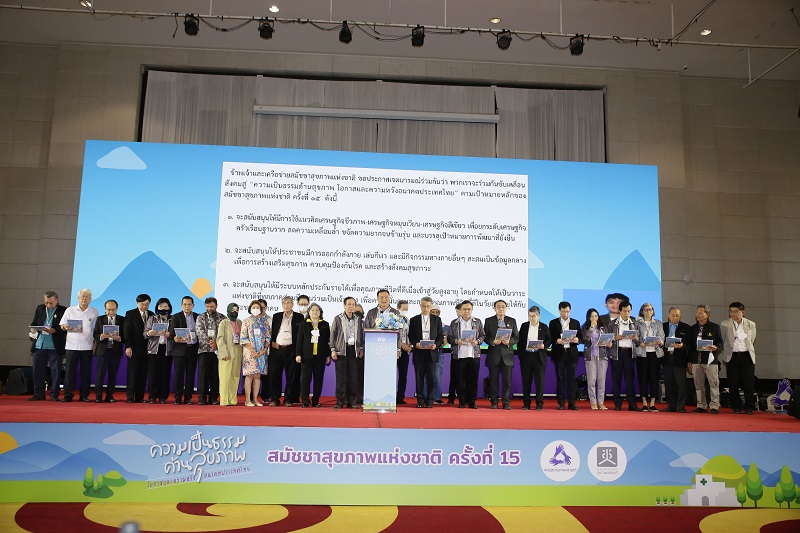 อนึ่ง เวทีสมัชชาสุขภาพแห่งชาติ ครั้งที่ 15 พ.ศ.2565 จัดขึ้นระหว่างวันที่ 21-22 ธ.ค. 2565 โดยนอกจากการร่วมกันประกาศเจตนารมณ์ และแสดงถ้อยแถลงเพื่อร่วมกันขับเคลื่อนมติทั้ง 3 ประเด็นแล้ว ยังมีหัวข้อเสวนาที่น่าสนใจมากมาย รวมทั้งการแสดงปาฐกถาที่ได้รับเกียรติจาก ศ.ดร.เอนก เหล่าธรรมทัศน์ รมว.อุดมศึกษา วิทยาศาสตร์ วิจัย และนวัตกรรม รศ.ดร เจิมศักดิ์ ปิ่นทอง ประธานกรรมการนโยบายองค์การกระจายเสียงและแพร่ภาพสาธารณะแห่งประเทศไทย (ThaiPBS) ด้วย