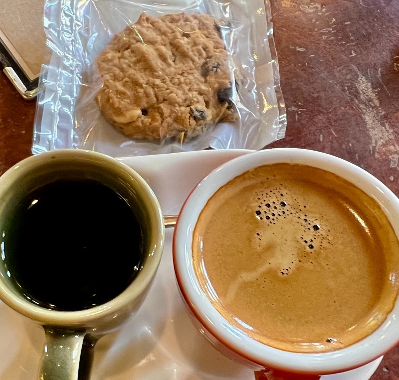 ผมก็สั่งเอสเพรสโซ่ร้อน 1 ถ้วย ตามสไตล์หนุ่ม-สุทนครับ คุณเบิร์ด เจ้าของร้านบอกว่าพันธุ์กาแฟเป็นพันธุ์อาราบิก้า ซึ่งสั่งตรงมาจากภาคเหนือจังหวัดเชียงใหม่ สุดยอดมากๆ ครับ นอกจากนี้ทางร้านยังมีบริการเครื่องดื่มอื่นๆ ทั้งแบบร้อนและเย็นอีกหลากหลายเมนูให้ได้เลือกสั่งกันตามความชอบของแต่ละท่านครับ ไม่ว่าจะเป็นประเภทกาแฟ โกโก้ หรืออื่น ๆ แล้วยังมีขนมเค้ก ครัวซองท์และขนมจีบ ซาลาเปา
