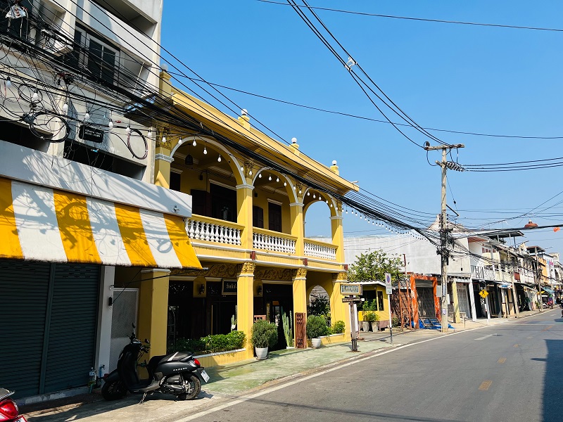 ถนนปากแพรก เป็นถนนเล็กๆ ที่เคยเป็นย่านค้าขายที่สำคัญมาเมื่อครั้งอดีต ซึ่งชาวบ้านที่ถนนปากแพรกนี้ส่วนใหญ่เป็นชาวจีนที่อพยพมาจากเวียดนาม ครั้งนี้ผมเองก็ชื่นชอบในบรรยากาศถนนชุมชนนี้ ได้จิบกาแฟสดเพลินๆ ชมตึกสวยๆ “ชิโนโปรตุกีส” ซึ่งเป็นอิทธิพลมาจากตะวันตกที่เคยพบเห็นกันในเมืองภูเก็ตนั่นเลยเหรอครับ ที่นี่ก็ไม่ได้แตกต่างจากที่ภูเก็ตสักเท่าไหร่ ผมเองได้พูดคุยกันกับคุณเบิร์ดซึ่งเป็นทายาทของตึกชิโนโปรตุกีสเล่าเรื่องให้ฟังว่าตึกหลังนี้ดั้งเดิมเคยเป็นร้านโชห่วยหรือร้านขายของชำ ส่วนด้านหลังคือแม่น้ำแควใหญ่ครับ มากด้วยเรือของชาวบ้านมาจอดเพื่อซื้อสินค้าในตลาดและเรือสินค้ามาจากอัมพวาเมืองแม่กลองหรือสมุทรสงคราม ส่วนหน้าตึกเป็นย่านค้าขาย ต่อมาก็เป็นท่ารถเมล์ สำหรับตึกหลังนี้ก็รับการได้รีโนเวท ปรับปรุงใหม่กลายเป็นสำนักงานทนายความ ส่วนทุกวันนี้ตึกชิโนโปรตุกีสหลังนี้ทำเป็นร้านกาแฟสดชื่อ “สิทธิสังข์หรือบ้านสิทธิสังข์” ตกแต่งสวยงาม มีลวดลายของไม้ฉลุ มีมุมให้เลือกนั่งทั้งด้านนอกแบบรับลมหรือจะเป็นโซนด้านในมุมโซฟานั่งสบายๆ เลือกได้ตามความชอบครับ ผมชอบสไตล์การแต่งร้านมากครับเหมาะกับตึกเก่ามากๆ