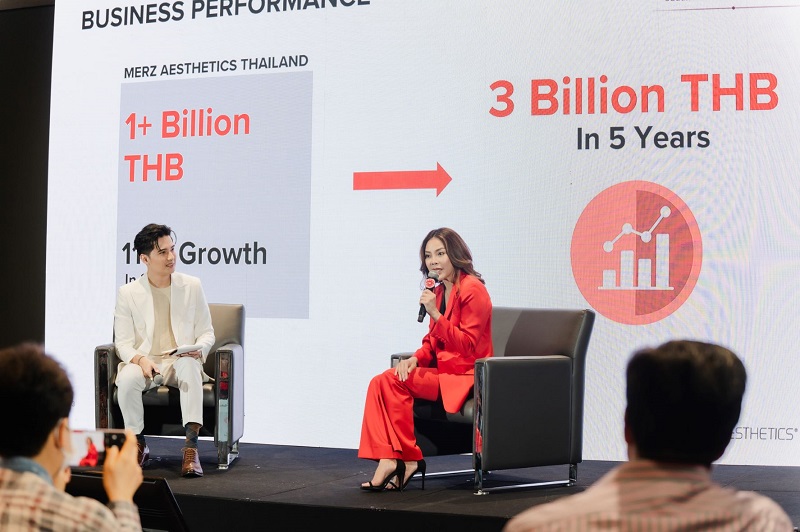 ประเทศไทย วันที่ 10 มีนาคม 2566 – เมิร์ซ เอสเธติกส์ ประเทศไทย บริษัทชั้นนำระดับโลก ผู้ผลิตและจัดจำหน่ายเครื่องอัลเทอร่า และเวชภัณฑ์สำหรับใช้ในคลินิกเสริมความงาม เพื่อทุกความมั่นใจของคนไทย เฉลิมฉลองการก้าวสู่ปีที่ 8 ตอกย้ำความสำเร็จในการเป็นผู้นำด้านนวัตกรรมความงาม ด้วยยอดขายทะลุหนึ่งพันล้านบาท หรือเติบโตแบบ Triple Digit ที่ 111% พร้อมตั้งเป้าการเติบโตภายใน 5 ปี ที่สามพันล้านบาท ซึ่งสอดคล้อง[1]ภาพรวมตลาดเวชศาสตร์ความงามไทยที่โตอยู่ที่ 6 หมื่นล้านบาท เช่นเดียวกับอัตราการเติบโตเฉลี่ย 80% ต่อปี ที่ทำให้ธุรกิจในกลุ่มนวัตกรรมความงามเติบโตรุดหน้าอย่างต่อเนื่อง