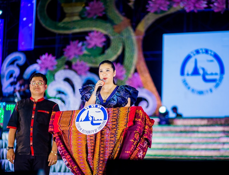 นางสาวฐาปนีย์ เกียรติไพบูลย์ รองผู้ว่าการด้านตลาดในประเทศ การท่องเที่ยวแห่งประเทศไทย (ททท.) ให้เกียรติเป็นประธานในการกล่าวเปิดงาน “Concert หมอลำเสียงอีสาน X ISAN IN LOVE” เชิญชวนคนไทยออกเดินทางไปสร้างประสบการณ์การท่องเที่ยวในรูปแบบใหม่ ร่วมสนุกกับ Concert หมอลำเสียงอีสาน นำทัพโดย แม่นกน้อยเสียงอีสาน ณ วัดป่าอาเจียง ต.กระโพ อ.ท่าตูม จ.สุรินทร์