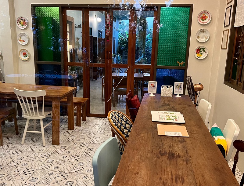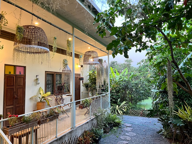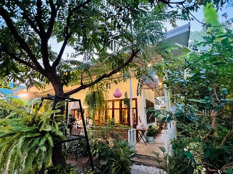 ตัวร้าน ก็เป็นบ้านที่อยู่อาศัยในลักษณะบ้านสวนเรือครับก็เหมือนเราไปนั่งกินข้าวในบ้านของบ้านเพื่อนสักคนอาหารจะมาจานใหญ่ใหญ่หน่อยนะครับแต่เต็มไปด้วยคุณภาพ กินด้วยความมั่นใจว่าเป็นอาหารปลอดภัยกับสุขภาพของคุณอย่างแน่นอน ในสวนเกษตรโอนพื้นที่ของที่ร้านหรือบ้านนี้ติดกับร้านอาหารมากด้วยผลไม้ท้องถิ่น เช่น ส้มโอ กล้วยหอม กล้วยน้ำหว้า มะม่วง และที่สำคัญที่นี่ปลูกผักออร์แกนิคเอง แล้วนำมาปรุงให้ลูกค้าภายในร้านสมชื่อเลยครับ “ปลูกกับปรุง”