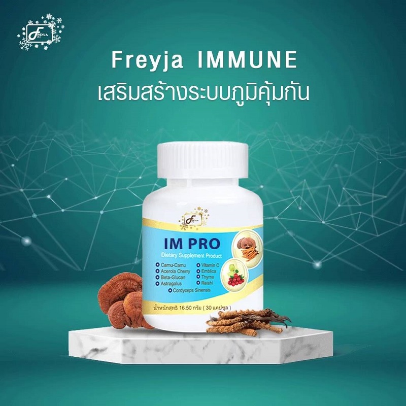 นอกจากนั้นแล้วเฟรยา โป ยังมีผลิตภัณฑ์อาหารเสริม Freyja IM Pro ที่จะช่วยเสริมภูมิต้านทานเพื่อให้ร่างกายแข็งแรง ลดการเกิดภูมิแพ้ ไอ จาม คัดจมูก พร้อมการดูแลสุขภาพแบบองค์รวม ด้วยการบำรุงจาก เบตา กลูแคน วิตามินซี ถั่งเช่าจากประเทศทิเบต เห็ดหลินจือ และสารสกัดทรงคุณค่าอีกหลายชนิด
