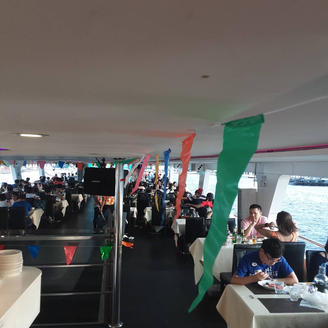 - Meridian Cruise 2 เรือสำราญล่องเจ้าพระยา ตัวเรือมีสีขาวสวยงามสง่า บนเรือมีพื้นที่โอ่โถงกว้างขวางถึง 2 ชั้น มีที่นั่งให้เลือกทั้งโซนอินดอร์และเอาต์ดอร์ ลูกค้าสามารถเลือกนั่งได้ตามใจ ใครอยากมีโมเมนต์แสนโรแมนติก อยากได้โต๊ะนั่งบริเวณหัวเรือเพื่อรับลมชมวิวหรือถ่ายรูปสวยๆ ได้อย่างเต็มตา แนะนำว่าต้องจองล่วงหน้า เพราะที่นั่งบริเวณหัวเรือนั้นเต็มทุกวัน