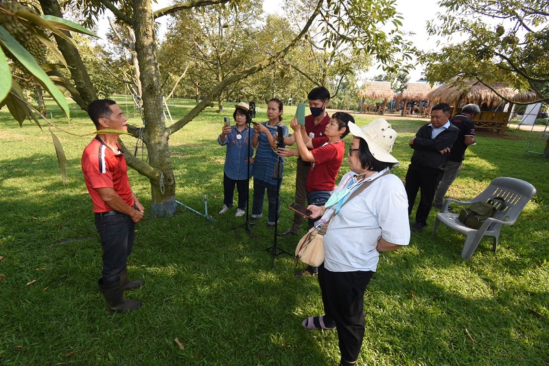 ในโอกาสนี้ คณะนักวิจัยได้นำคณะสื่อมวลชนลงพื้นที่สวนประภาพรรณ ตำบลบ้านแยง อำเภอนครไทย จังหวัดพิษณุโลก เพื่อเยี่ยมผลผลิตที่ได้จากโครงการฯ โดยมี คุณเนาวรัตน์ มะลิวรรณ เกษตรกรเจ้าของสวนฯ ให้การต้อนรับและให้ความรู้เกี่ยวกับทุเรียนแก่คณะสื่อมวลชนอีกด้วย