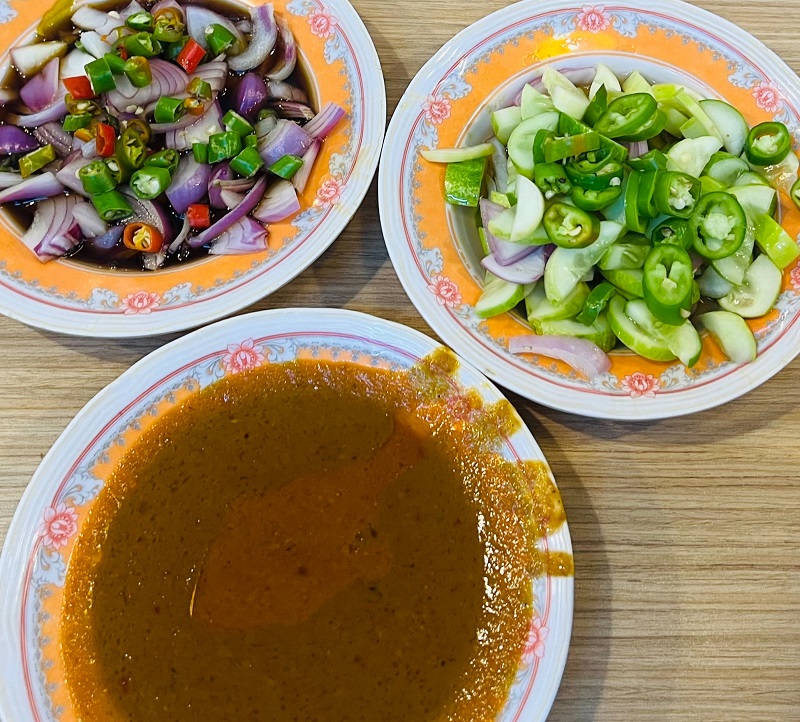 ได้เวลาพอสมควรก็เดินข้ามถนนมา ร้านที่ 5 ชื่อ “ร้านเจ๊โอว” เมนูยอดฮิดจริงๆ ต้องสั่งคือ “มาม่าโอ้โห” คล้ายๆ ต้มยำมาม่าผมเองได้ชิมแล้วก็ร้องโอ้โห อร่อยสมชื่อตามด้วยยำปลาแซลมอนและยำหมูกรอบ ขอบอกเลยครับร้านนี้คนแน่นจริง ๆ ต้องได้ลองชิมนะครับ
