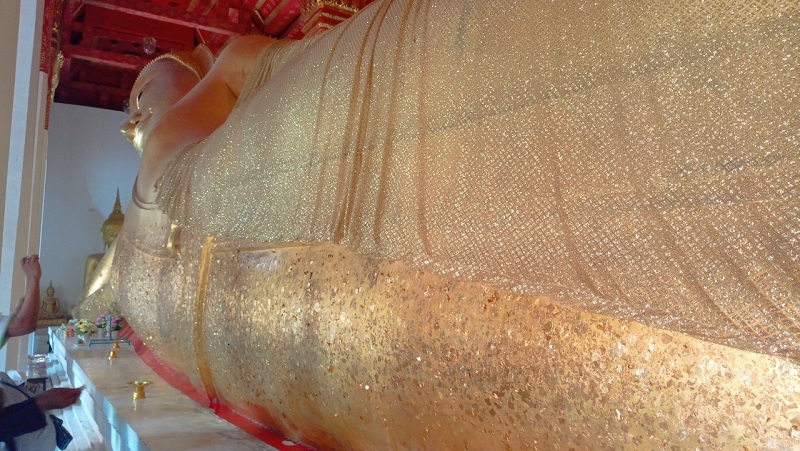 รวมถึงการเดินทางเที่ยวชมวัดป่าโมกเพื่อกราบสักการะองค์พระพุทธไสยาสน์ที่สวยงามของจังหวัดอ่างทอง ถือได้ว่านักท่องเที่ยวได้มาสัมผัสประสบการณ์ท้องถิ่น (One Destination, One Local Experience) ของจังหวัดอ่างทอง และ เป็นการขับเคลื่อน Soft Power “กลองเอกราช” จังหวัดอ่างทองให้เป็นที่รู้จักเพิ่มมากขึ้น ส่งผลดีต่อภาคเศรษฐกิจโดยรวมของจังหวัดอ่างทอง อีกแห่งหนึ่งที่ทางคณะมัคคุเทศก์อาชีพ อยากจะให้มัคคุเทศก์ได้สัมผัสกับอารยธรรมศิลปวัฒนธรรมท้องถิ่น ด้วยการมาชมพระพุทธไสยาสน์ พระนอนองค์ใหญ่ที่สุดในโลก ที่วัดขุนอินทประมูล อำเภอวิเศษชัยชาญ ได้มาเห็นพระนอนที่สวยงามที่สุดอีกแห่งหนึ่งของจังหวัดอ่างทอง ซึ่งมีแหล่งท่องเที่ยวทางศิลปวัฒนธรรมท้องถิ่นมากมายของจังหวัดอ่างทอง ที่มีอะไรน่าสนใจมากมาย ก่อนที่จะเดินทางกลับกรุงเทพฯ เสร็จสิ้นภารกิจท่องเที่ยวของจังหวัดอ่างทอง.