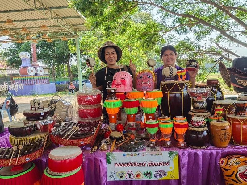 การวางรูปแบบการจัด “กิจกรรมเปิดเส้นทางนำร่องท่องเที่ยว Fam Trip เส้นทางหมู่บ้านทำกลองเอกราช” ประกอบด้วย การออกร้านจำหน่ายสินค้า ‘กลองเอกราช’ ของชุมชนหมู่บ้านทำกลองเอกราช ผลิตภัณฑ์ OTOP และสินค้าของดีอ่างทอง อาทิเช่น อภิสญาผ้าบาติก กลุ่มผลิตภัณฑ์เซรามิคโพธิ์ทอง วิสาหกิจชุมชนตาลปัตรจากใบหญ้าแฝกวัดชัยมงคล และกลุ่มจักสานผักตบชวาบ้านบางตาแผ่น การสาธิตขนมโบราณ โดยเฉพาะขนมเกสรลำเจียกที่เป็นขนมดั้งเดิมของอ่างทองที่มีรสชาติกลมกล่อม การสาธิตการปั้นตุ๊กตาชาววัง การสาธิตการทำหัวโขน นอกจากนั้นนักท่องเที่ยวจะได้นั่งรถรางชมแหล่งทำกลองถึงถิ่น เยี่ยมชมและเรียนรู้การทำงานของผู้ผลิตกลองโดยตรงอย่างใกล้ชิด และเลือกซื้อกลองประเภทต่างๆ เพื่อเป็นของที่ระลึกกลับบ้าน ด้วยความประทับใจ