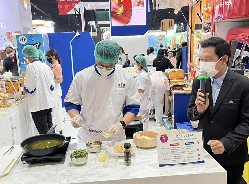 นายทวี ปิยะพัฒนา ประธานกรรมการบริหารกลุ่มบริษัท พี.เอฟ.พี. ผู้นำด้านการผลิตและจัดจำหน่ายผลิตภัณฑ์อาหารทะเลแปรรูปครบวงจร เปิดเผยว่า “สำหรับงาน THAIFEX ANUGA ASIA 2023 ในปีนี้ PFP ออกบูธภายใต้คอนเซ็ปต์ PFP GLOBAL โชว์ความพร้อมเป็นคลังวัตถุดิบโลก หลังประกาศตั้งเป้ารุกตลาดต่างประเทศในผลิตภัณฑ์เพื่อสุขภาพอย่างเต็มตัว มุ่งเดินหน้าขยายตลาดใหม่ในกลุ่มประเทศ แอฟริกาใต้ สหรัฐอเมริกา และตะวันออกกลาง เป็นต้น ด้วยมั่นใจในผลิตภัณฑ์ PFP มีความโดดเด่นในเรื่องความหลากหลาย สามารถสร้างสรรค์เมนูเป็นอาหาร ท้องถิ่นในแต่ละประเทศได้อย่างกลมกลืนด้วยรสชาติและคุณค่าที่เป็นเอกลักษณ์ ตอบโจทย์ในทุกธุรกิจอาหาร และเป็นที่ยอมรับเรื่องคุณภาพของสินค้าด้วยมาตรฐานเดียวกันในระดับสากล ที่แสดงให้เห็นถึงความใส่ใจและห่วงใยผู้บริโภคทั่วโลก PFP จึงมีความมั่นใจอย่างยิ่งในการนำพา PFP Brand บุกตลาดโลก ร่วมเพิ่มมูลค่าการส่งออกอาหารไทย โดยเริ่มรุกตลาดในกลุ่มประเทศ GCC มุ่งเน้นการขายสินค้า PFP Brand ล่าสุดจับมือร่วมเป็นพันธมิตรกับ LuLu Hypermarket ซุปเปอร์มาร์เก็ตค้าปลีกที่ใหญ่ที่สุดในตะวันออกกลาง เป็นพาร์ทเนอร์ทางธุรกิจซึ่งเปรียบเสมือนฑูตนำพาสินค้าเอเชียสู่ตะวันออกกลางด้วยวัฒนธรรมอาหาร ที่มี 200 กว่าสาขาใน 13 ประเทศทั่วโลก ในเบื้องต้น PFP ส่งสินค้าไปจำหน่าย ที่อาบูดาบี เมืองหลวงของสหรัฐอาหรับเอมิเรตส์ ในกลุ่มสินค้า ขนาด 500 กรัมได้แก่ ผลิตภัณฑ์เต้าหู้ปลา, เต้าหู้ชีส, ทอดมันปลา, ปูอัดโชกุน, ฟิชริง และ แบรนด์ PFP Gold ในกลุ่มสินค้าขนาด 200 กรัม ได้แก่ Squid Nugget และ Shrimp Nugget เป็นต้น โดยถือเป็นจุดเริ่มต้นเพื่อเปิดโลกให้สินค้าไทยเข้าไปสู่โลกตะวันออกกลาง เชื่อมโลกทั้ง 2 ใบให้เป็นหนึ่งเดียว โดยคาดการณ์ว่าจะเพิ่มมูลค่ายอดขายในกลุ่มประเทศ GCC โตขึ้น 10 % ภายในปีนี้ และ PFP ยังมี แผนเพิ่มกิจกรรมทางการตลาดร่วมกับพันธมิตรที่เป็นตัวแทนจำหน่ายในประเทศอื่นๆ เช่น การทำสื่อการตลาดให้กับลูกค้า ทำ Content ประชาสัมพันธ์ออนไลน์ผ่าน FB : PFP GLOBALในต่างประเทศ และเริ่มออกบูธประชาสัมพันธ์สินค้าใน Event ต่างๆ หลังจากการผ่อนปรนมาตรการโควิดในหลายๆประเทศ ดังนั้นในปีนี้ PFP จึงมีความพร้อมเป็นอย่างมากในการประกาศ เป็นคลังวัตถุดิบเพื่อสนับสนุนธุรกิจอาหารทุกประเทศทั่วโลกตาม Concept “PFP GLOBAL”