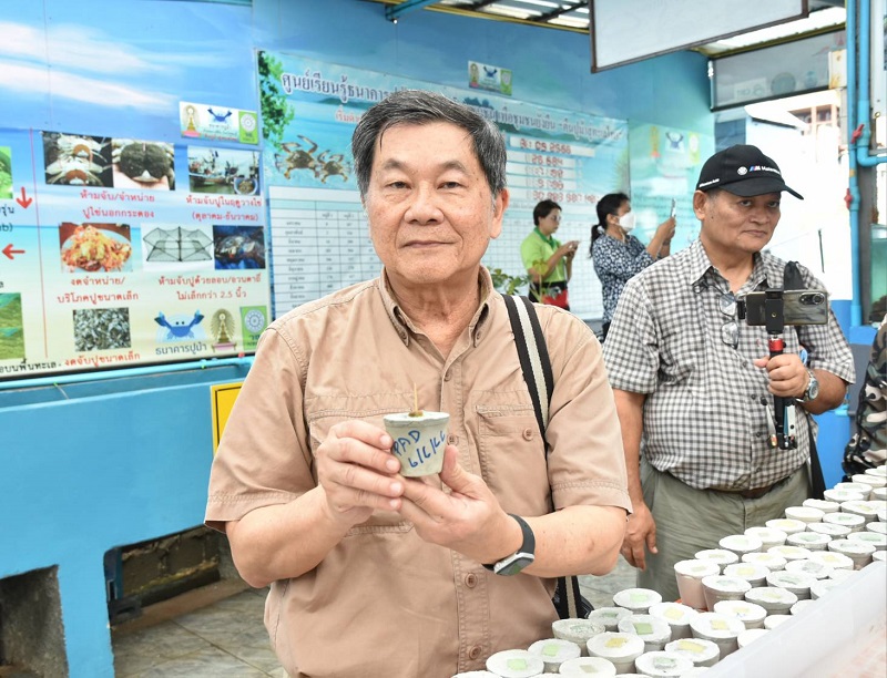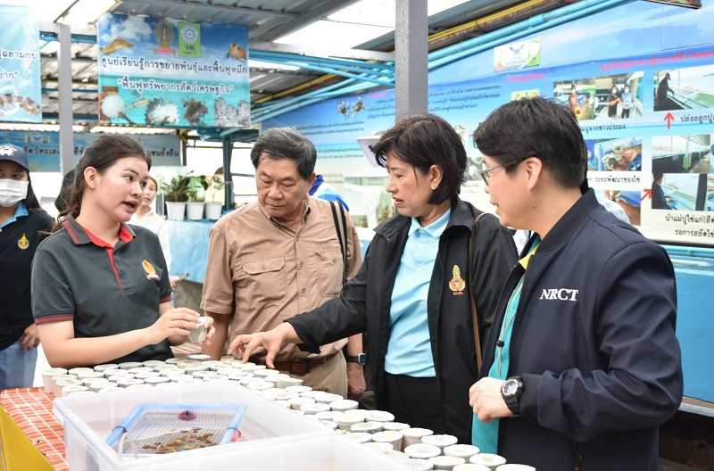 ทั้งนี้ ผู้ทรงคุณวุฒิ วช. พร้อมด้วยสื่อมวลชน ได้ลงพื้นที่ศูนย์เรียนรู้ธนาคารสัตว์ทะเล เกาะสีชัง โดยชุมชน เพื่อชุมชนที่ยั่งยืน ในพระราชูปถัมภ์ฯ เพื่อเยี่ยมชมผลการดำเนินงาน โครงการ “การพัฒนาเทคโนโลยีเพื่อการฟื้นฟูปะการัง: เทคนิคการทำชิ้นส่วนปะการังขนาดเล็กการเชื่อมโคโลนีปะการังและการรักษาความหลากหลายทางพันธุกรรมของประชากรปะการัง” ซึ่งผลสำเร็จจากการวิจัยและพัฒนา ไปสู่การผลักดันให้เกิดการพัฒนาด้านทรัพยากรทางทะเล ผ่านงานวิจัยที่เกิดจากความร่วมมือของทุกภาคส่วน จะนำไปสู่การอนุรักษ์และการฟื้นคืนระบบนิเวศทะเลไทย สู่การอนุรักษ์ปะการังที่ยั่งยืนต่อไป