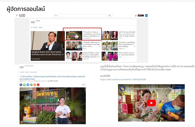 “วี ฐิตาภา ธนทรัพย์ปรีชาย์” หรือ “วี หงษ์ทอง” CEO บริษัท หงษ์ทอง จำกัด ซึ่งได้จัดตั้ง “โครงการหงษ์ทองปันน้ำใจสลากทุกใบสร้างอาชีพ” มาได้ระยะหนึ่ง ได้รับการชื่นชมจากหลายภาคส่วนว่าเป็นโครงการดี ช่วยสร้างสรรค์ ทำให้ “วี ฐิตาภา ธนทรัพย์ปรีชาย์” รู้สึกมีกำลังใจ และตั้งปณิธานว่าจะทำเพื่อสังคมตลอดไป โดยเจ้าตัวกล่าวด้วยความความตื้นตัน กับอีกหนึ่งความภาคภูมิใจ ที่ หงษ์ทอง.COM ลอตเตอรี่ออนไลน์ได้มีโครงการการคืนกำไรให้กับสังคมว่า