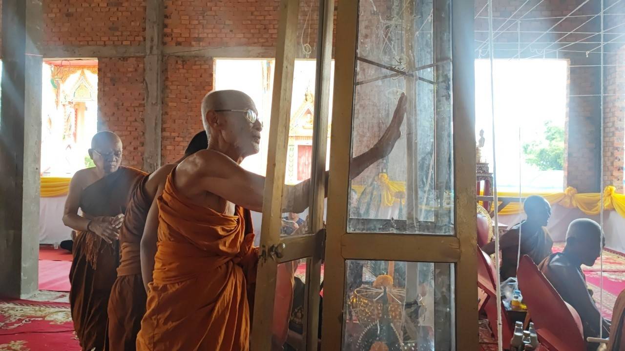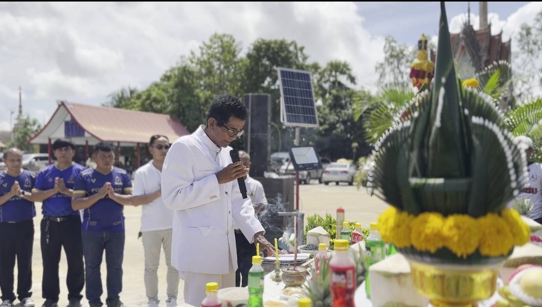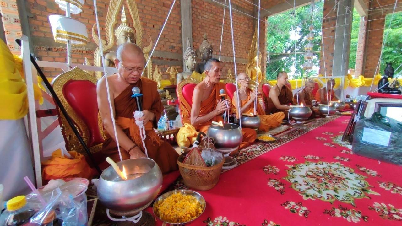 ช่วงเช้ามีพิธีบวงสรวงหน้าเจดีย์บรรจุสรีรสังขารหลวงปู่ ท่านผู้นำชุมชน กำนันสุจิตตรา อาษากิจ ท่านอิสรา โพธิ์เงิน นายอำเภอน้ำเกลี้ยงได้กล่าวต้อนรับคณะศิษยานุศิษย์, คุณแม่แก้ว สุดารัตน์ (แม่ณเดชน์ คูกิมิยะ)และคณะผู้มาร่วมงานในพิธีอย่างเป็นทางการ