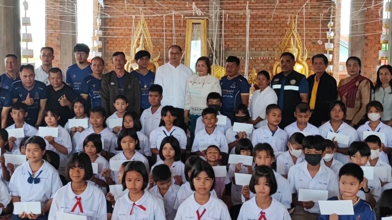 3.อีกทั้งยังมีพิธีมอบทุนการศึกษาเด็กเรียนดี พฤติกรรมดี ขาดแคลนทุนทรัพย์และขาดโอกาสทางการศึกษาของลูกๆหลานๆในชุมชนต่างๆใน อำเภอน้ำเกลี้ยง จ.ศรีสะเกษ เนื่องจากเด็กและเยาวชนจะเติบโตเป็นกำลังหลักในการพัฒนาชุมชน สังคม และประเทศชาติต่อไป