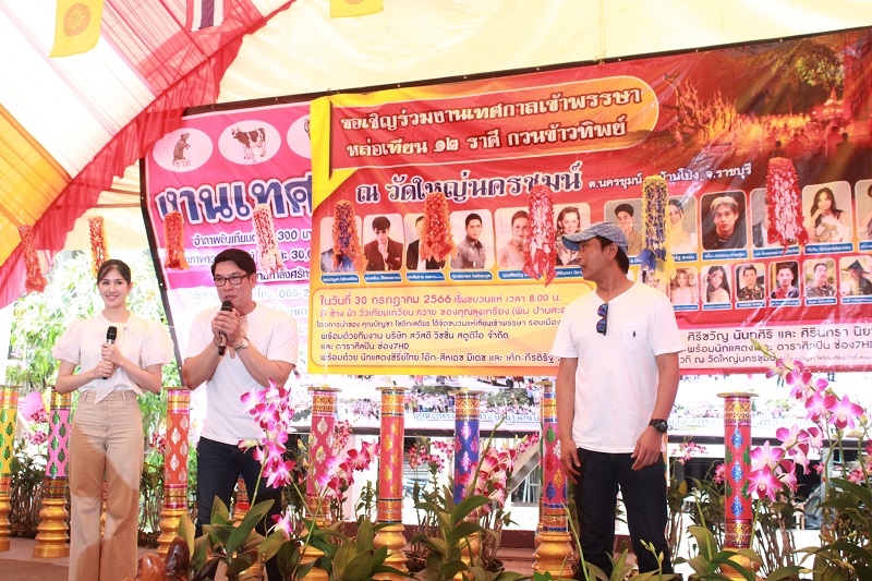 เมื่อวันอาทิตย์ที่ 30 กรกฎาคม ที่ผ่านมา ผู้จัดและผู้กำกับละครหนุ่ม “สโนวี่-สพัฌ วิไชยเมธา” ได้นำทีมนักแสดงอาทิ “กระดุม-ธนายง ว่องตระกูล” “วรพรต ชะเอม” “ศิรินทรา นิยากร” “ศิริขวัญ นันทศิริ” “บัญชา โชติกเสถียร” พร้อมด้วยเหล่านักแสดงนิวเจน จาก บริษัท สวัสดี วิชชั่น สตูดิโอ จำกัด “เก้า-ณธีพัฒน์ นพเจริญพงศ์” “อาเสี่ย-ชินพรรธน์ ธนันท์จิระโชต” “แม็บ-วรรธนะ เทพสุยะ” “ดีเซล-ธัญณัฏฐนันท์ โสภณถาวรกุล” “เค้ก-กีรติรัฐ ชะเอม” “มีตังค์-ศุภรากร รักษ์กระโทก” “เบลล์-สุธาสินี ศรีสว่าง” และ “ช้อนตวง-เขมฑิษา สุขสมบูรณ์” รองอันดับ 1 และ 2 มิสยูนิเวิร์ส พระนครศรีอยุธยา ไปร่วมงานเทศกาลเข้าพรรษา หล่อเทียน 12 ราศี กวนข้าวทิพย์ ณ วัดใหญ่นครชุมน์ อ.บ้านโป่ง จ.ราชบุรี