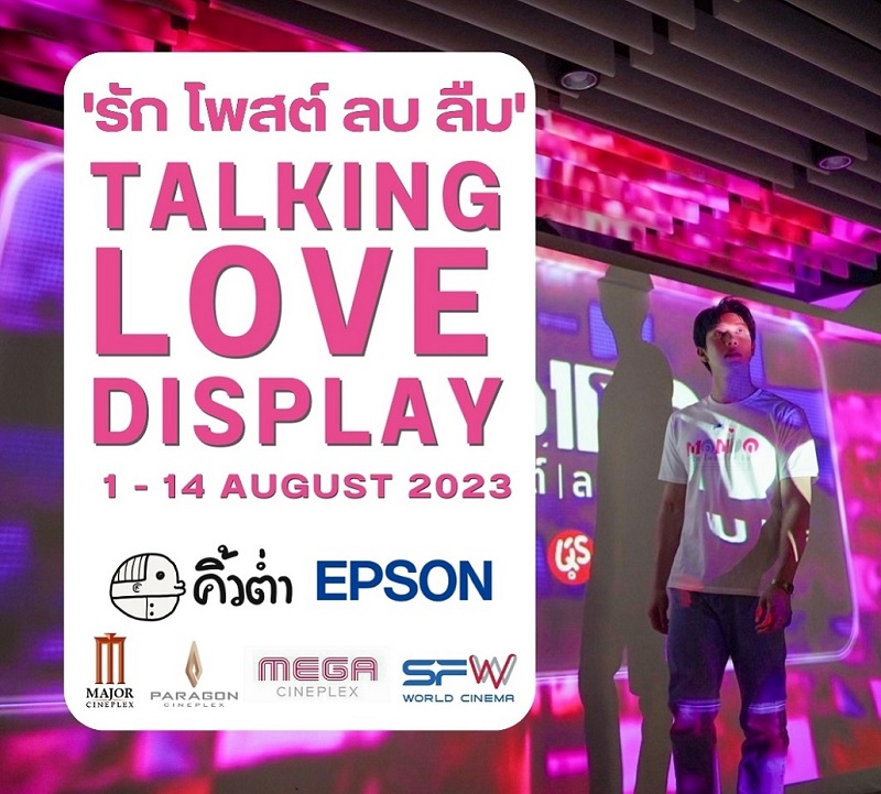 โดยนิทรรศการ “Talking Love Display” ครั้งนี้ได้รับการสนับสนุนพิเศษจาก Epson” บริษัทผู้นำทางด้านเทคโนโลยีการฉายภาพและการพิมพ์ระบบดิจิตอลระดับโลก รวมถึง “โรงภาพยนตร์เมเจอร์ ซีนีเพล็กซ์” และ “โรงภาพยนตร์ เอส เอฟ ซีเนม่า” ที่มาร่วมจัดเต็มดิสเพลย์แห่งความรู้สึกนี้ด้วยกัน