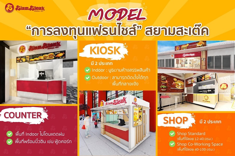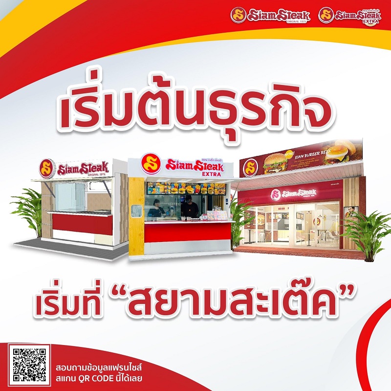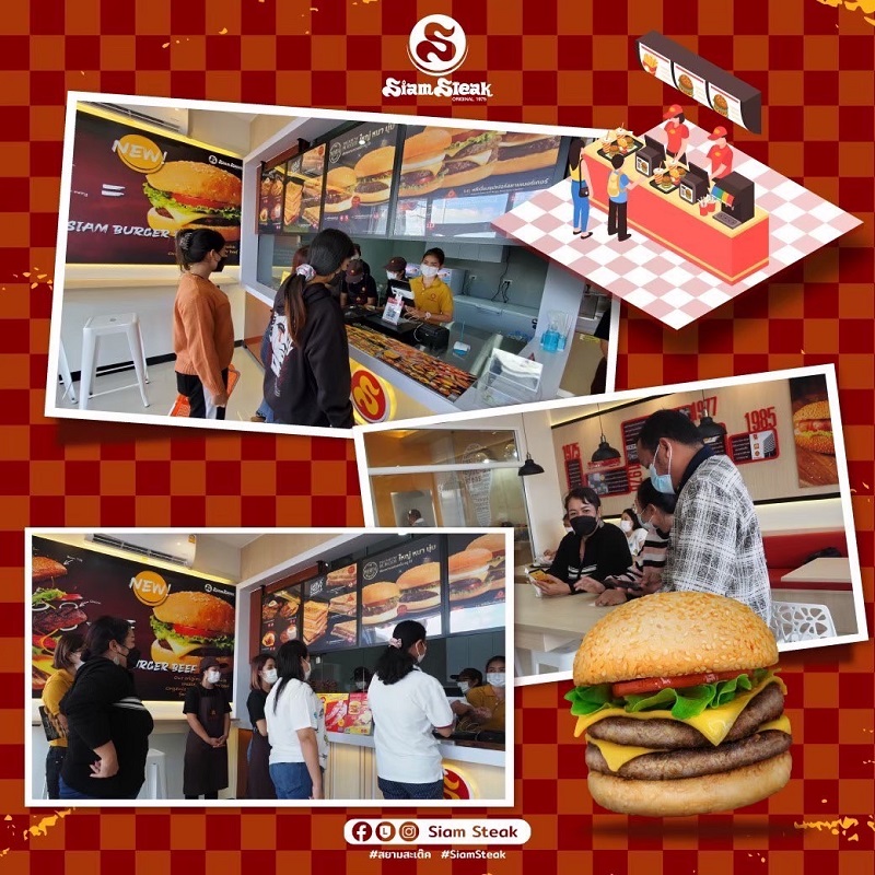 สยามสะเต๊ค แฮมเบอร์เกอร์เจ้าแรกในไทย มีสาขามากกว่า 20 สาขาทั่วไทย ขยายสาขาแฟรนไชส์ มีทั้งมหาวิทยาลัย สำนักงานออฟฟิศ โรงพยาบาล ปั้มน้ำมัน เมนูซิกเนเจอร์ สยามเบอร์เกอร์ บะหมี่ แซนด์วิชอบร้อน ไส้กรอกเยอรมัน สยามสะเต๊กเป็น แบรนด์เก่าแก่อายุยาวนานกว่า 50 ปี การันตีทีมบริหารมากประสบการณ์ โดยมีสาขาล่าสุดที่จังหวัดสระบุรี