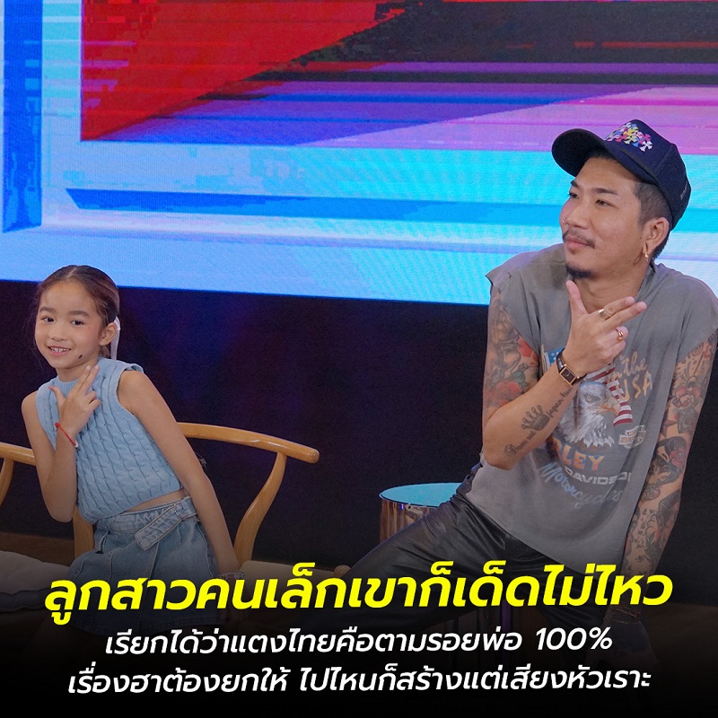 ส่วนน้องสาวอย่างแตงไทยถ้านึกถึงบอกเลยว่ามองยังไงก็เหมือนแจ๊ส เพราะแทบจะถอดแบบกันทุกอย่าง การพูด เดิน ยืน นอน แถมเวลาเล่นมุขแต่ละอย่างคือใช้เลยเหมือนเป๊ะ และเรื่องเต้นก็ขอให้บอกทางแตงไทยคือไม่แพ้พ่อเลย เริ่มว่ายอมกันไม่ได้ถ้าพ่อเป๊ะหนูก็จะต้องเป๊ะกว่าพ่อ แล้วล่าสุดถึงขั้นไปเรียนเป็นช่างสัก เพราะดู TikTok แล้วชอบ งานนี้ถ้าลูกชอบทางบ้านก็สนับสนุนเต็มที่และแน่นอนว่า ลายสักแรกของน้องแตงไทยที่ได้ทำจะเป็นใครไปไม่ได้นอกจากพ่อแจ๊ส เรามารอดูพร้อมกันดีกว่าว่าจะออกมาสวยเป๊ะแค่ไหน