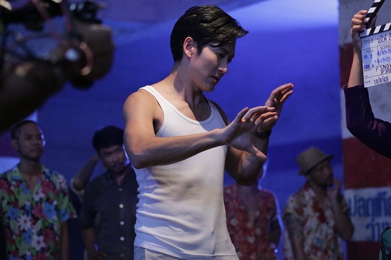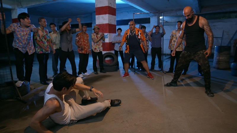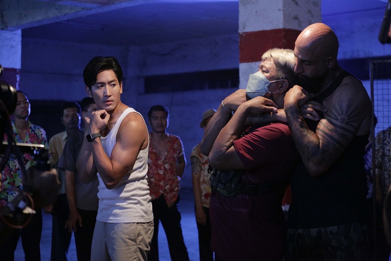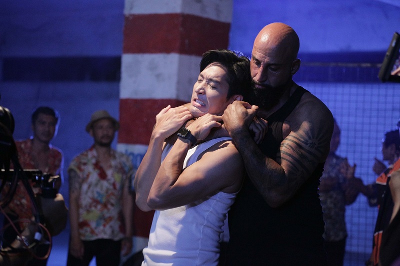 ซึ่งฉากนี้คือฉากที่ ไนกี้ ต้องต่อสู้กับพี่เบิ้ม นักแสดงสมทบที่ตัวสูงใหญ่กว่ามาก ๆ แบบโดนจัดเต็มจัดหนักเน้น ๆ ทั้งเตะ ทั้งต่อย แถมโดนจับทุ่มลงพื้นจนสะบักสะบอมไปทั้งตัว ก่อนจะต้องมาดวลกับ บอย ต่ออีกยก ดังนั้นก่อนเริ่มถ่ายทำ พี่สโนวี่ ผู้กำกับฯ จึงเรียก ไนกี้ และ บอย มาซักซ้อมและนัดแนะคิวกันก่อนเพื่อไม่ให้เกิดความผิดพลาดและบาดเจ็บเพิ่มอีก ซึ่ง ไนกี้ เองก็เริ่มเดินกละเผลกเล็กน้อยแล้ว หลังจากถ่ายทำฉากก่อนหน้านี้จบไป เพราะขาด้านซ้ายที่บาดเจ็บเริ่มแสดงอาการมากขึ้น แต่เมื่อผู้กำกับฯ ถามว่าไหวไหม ไนกี้ ก็ตอบทันทีว่าไหวทันที พร้อมให้ถ่ายต่อได้ งานนี้ผู้กำกับฯ จึงเดินหน้าถ่ายต่อโดยกำชับให้ บอย คอยช่วยเซฟ ไนกี้ ด้วย ทางด้าน บอย ที่ฟิตร่างกายรออยู่สักพักแล้ว ก็พร้อมถ่ายทำด้วยเช่นกัน เมื่อสั่งแอคชั่น ทั้งคู่จึงเข้าปะทะกันทันที ไนกี้ และ บอย บู๊เต็มที่ตามที่ได้ซ้อมไว้ เล่นเอาทีมงานที่นั่งดูอยู่หน้ามอนิเตอร์ถึงกับลืมไปเลยว่า ไนกี้ บาดเจ็บอยู่