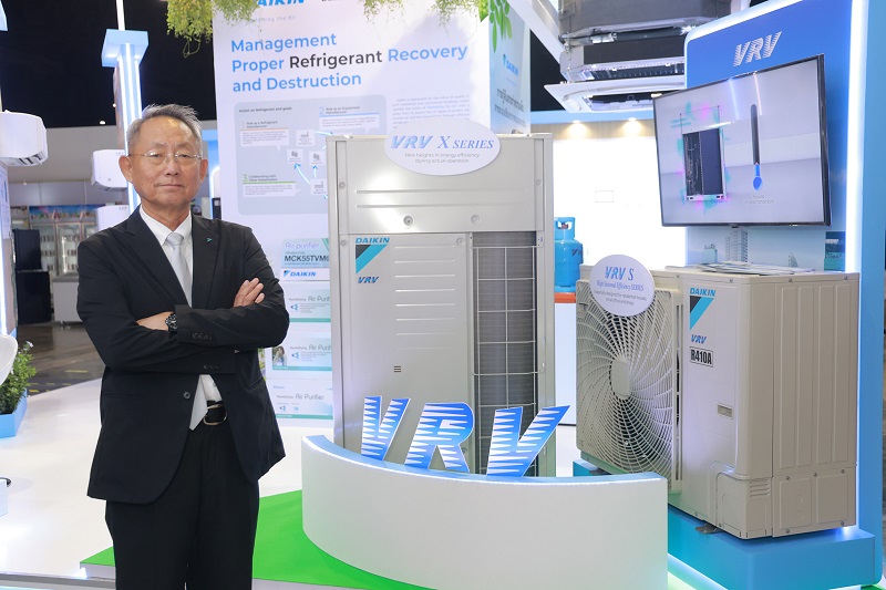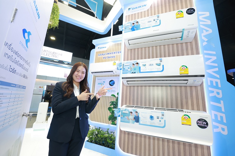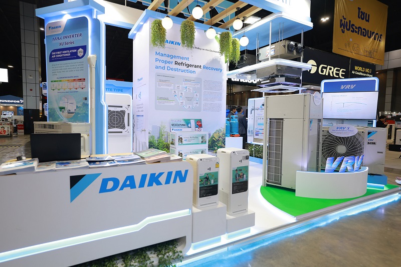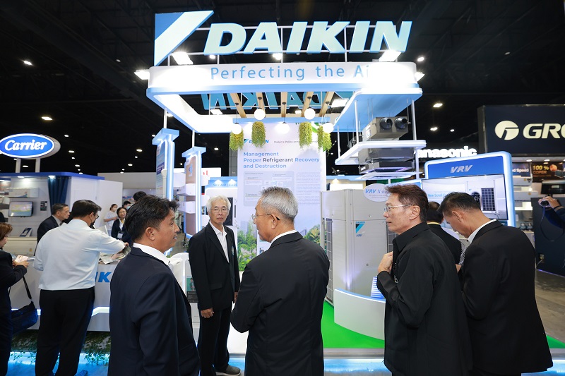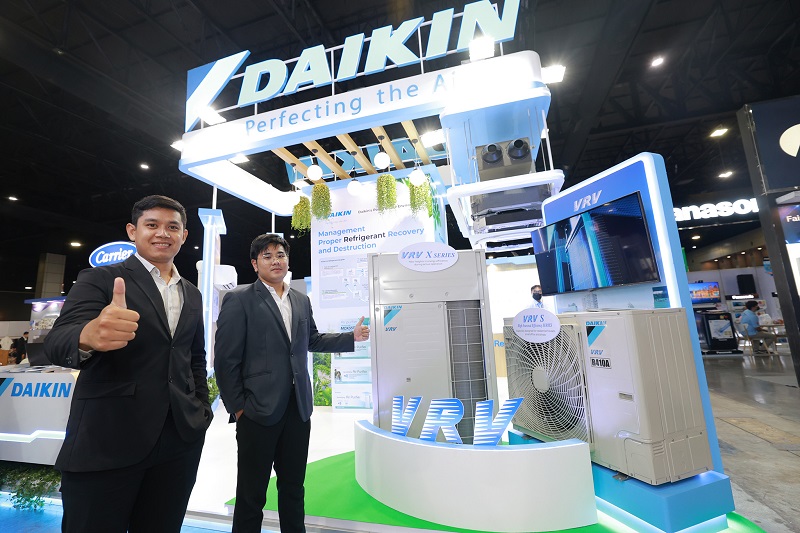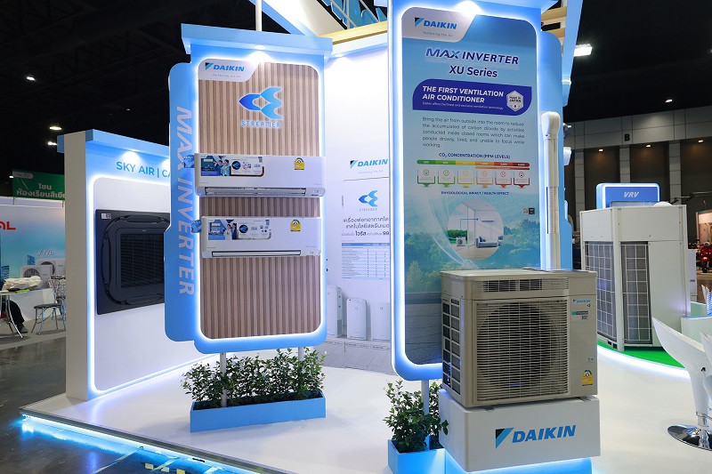 ภายในบูธไดกิ้นได้แสดงถึงผลิตภัณฑ์ Max Inverter สุดยอดเทคโนโลยีอินเวอร์เตอร์จากไดกิ้นที่มาพร้อมฟังก์ชั่นการเติมอากาศจากภายนอกเข้าสู่ภายในห้อง (Ventilation) ช่วยลดคาร์บอนไดออกไซด์ในห้องปิดเพื่อให้คุณสดชื่นกว่าที่เคย พร้อมทั้งฟอกอากาศ ด้วย Streamer Technology ประจุอิเล็คตรอนความเร็วสูงที่สามารถช่วยยับยั้งเชื้อโรคต่างๆ VRV ระบบปรับอากาศแบบรวมศูนย์ที่ชุดภายนอกหรือคอนเดนซิ่งหนึ่งชุดสามารถเชื่อมต่อชุดภายในหรือแฟนคอยล์ได้สูงสุดถึง 64 เครื่อง ผสานเทคโนโลยี VRT (Variable Refrigerant Temperature) ที่สามารถปรับ “อุณหภูมิของสารทำความเย็น” ตามสภาวะอากาศ จึงช่วยให้ประหยัดพลังงานมากยิ่งขึ้น พร้อมระบบควบคุมส่วนกลางอัจฉริยะ ITM (Intelligent Touch Manager) ที่ช่วยควบคุมและตรวจสอบการทำงานของไดกิ้นวีอาร์วีซึ่งถูกติดตั้งไปทั่วทั้งอาคาร ให้ผู้ใช้งานควบคุมการเปิด-ปิด เครื่องปรับอากาศได้ตามต้องการ กำหนดอุณหภูมิแต่ละห้อง ตั้งค่าการทำงานรายสัปดาห์ รวมถึงรายงานข้อมูลการใช้พลังงานได้อย่างแม่นยำ และลดการใช้พลังงาน