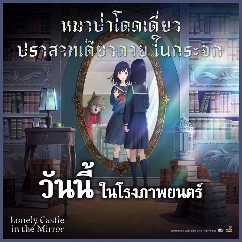 ภาพยนตร์อะนิเมชัน “Lonely Castle In The Mirror” หมาป่าโดดเดี่ยว ปราสาทเดียวดาย ในกระจก สร้างจากสุดยอดผลงานของ สึจิมุระ มิซึกิ นิยายขายดีที่ได้รับความนิยมอย่างกว้างขวางตั้งแต่เด็กไปจนถึงผู้ใหญ่ การันตีด้วยรางวัลชนะเลิศ Japan Bookseller Award (本屋大賞 / Honya Taisho ประจำปี 2018) ซึ่งเป็นรางวัลที่ร้านหนังสือทั่วประเทศโหวตให้หนังสือที่อยากขายที่สุดแห่งปี ด้วยคะแนนที่มากที่สุดในประวัติศาสตร์ กับเรื่องราวของ โคโคโระ เด็กนักเรียนม.ต้น ที่สูญเสียที่อยู่ของตัวเองที่โรงเรียน และขังตัวอยู่แต่ในห้อง วันหนึ่งในช่วงบ่ายของเดือนพฤษภาคม จู่ ๆ กระจกในห้องของเธอก็เปล่งแสง และดูดเธอเข้าไป เมื่อลืมตาขึ้นมา สิ่งที่เธอพบคือปราสาทใหญ่ที่ราวกับหลุดออกมาจากนิทาน กับเด็กม.ต้นคนอื่นที่ไม่รู้จักอีก 6 คน แล้วก็มีเด็กผู้หญิงที่ใส่หน้ากากหมาป่า ผู้เรียกตัวเองว่า “ท่านหมาป่า” ปรากฎตัวออกมา