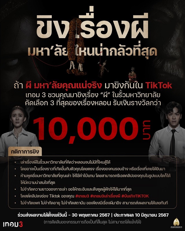 ปลุกตำนานเฮี้ยน! “เทอม 3” ท้าแฟนหนังขิงเรื่อง “ผีมหา’ลัย” ผ่าน TikTok ชิงเงินรางวัลกว่า 10,000 บาท 17/05/202417/05/2024 กอง บก. “สหมงคลฟิล์ม อินเตอร์เน… Read More