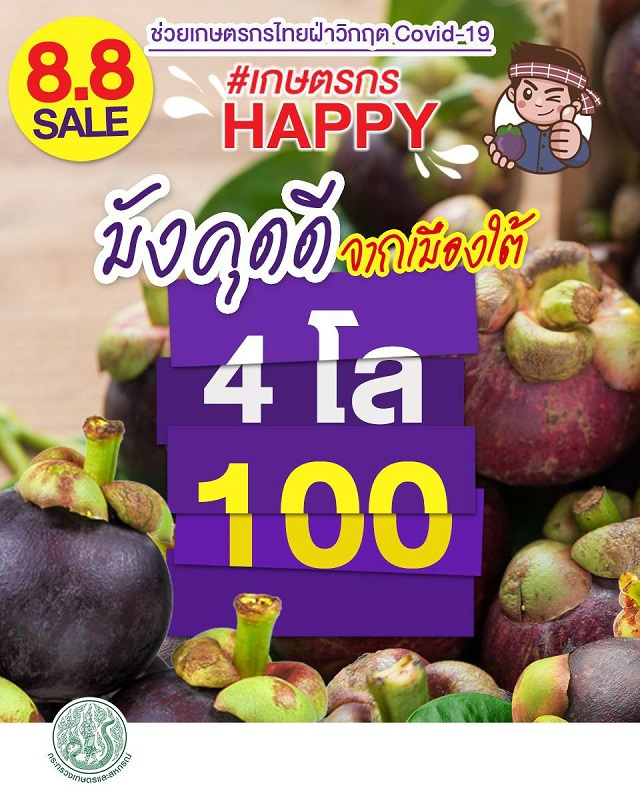 Read More“เฉลิมชัย” ปลื้มโครงการ”เกษตรกรแฮปปี้” ขายมังคุดวันที่ 8 เดือน 8 เกินคาด เตรียมคิกออฟซูเปอร์เซลล์ลำไย ลองกอง