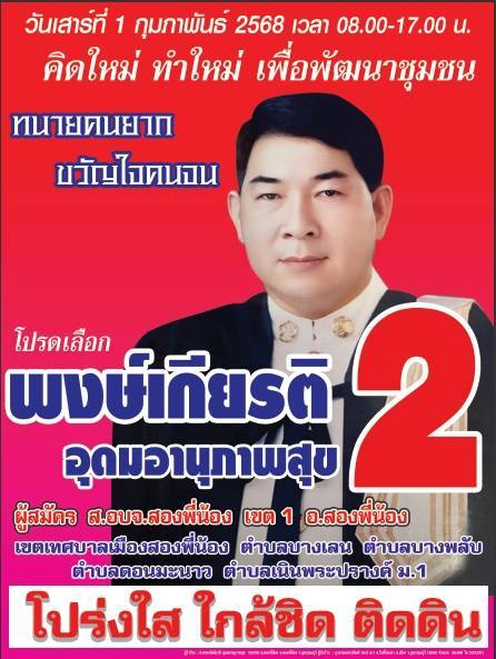 “คิดใหม่ ทำใหม่ เพื่อพัฒนาชุมชน“ พงษ์เกียรติ อุดมอานุภาพสุข เบอร์ 2 ขวัญใจประชาชน ผู้สมัคร ส.อบจ. อำเภอสองพี่น้อง