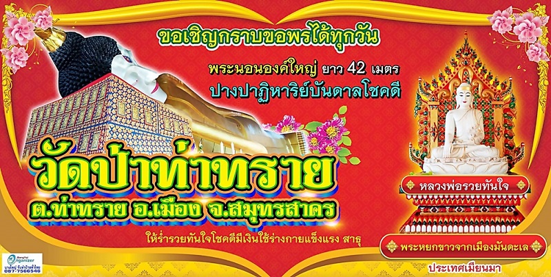 วัดป่าท่าทราย ต.ท่าทราย อ.เมือง จ.สมุทรสาคร ขอเชิญชาวพุทธศาสนิกชน และผู้มีจิตศรัทธา กราบขอ…