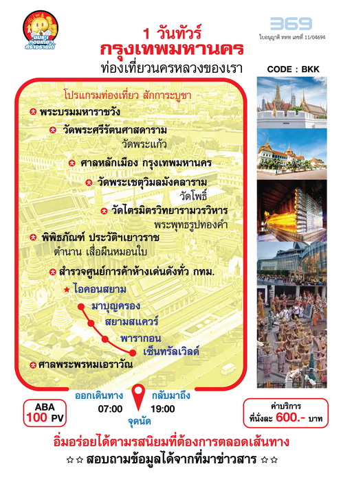 สอบถามข้อมูลและสำรองที่นั่ง โทร. 081-8359609, 086-3664797 หรือ LD Line : dainippontours