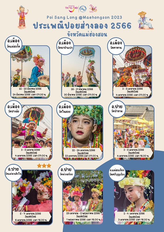 ททท.แม่ฮ่องสอน เชิญชวนร่วมงานประเพณี ปอยส่างลอง ประจำปี 2566 23/03/2023 กอง บก. ประเพณีปอยส่างลอง เป็นมนต์เสน่ห์หนึ่งในงานประจำปีเลื่องชื่อของชาวไทใหญ่แห่ง… Read More
