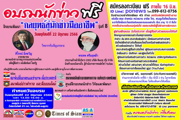 Read Moreสมาพันธ์สื่อมวลชนและช่างภาพเพื่อประเทศชาติ ร่วมกับ สมาคมนักข่าวอาชญากรรมแห่งประเทศไทย จะจัดอบรมนักข่าวฟรี “กลยุทธ์สู่นักข่าวมืออาชีพ รุ่นที่ 3”