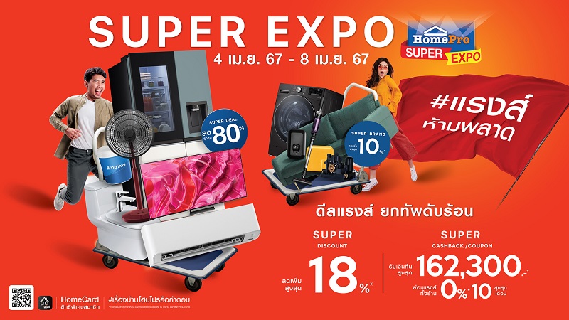 Read Moreยกทัพดับร้อนกับ “HomePro SUPER EXPO” #แรงส์ห้ามพลาด Super ดีลแรงส์ สินค้าเรื่องบ้านลดสูงสุด 80% คืนกำไรจัดเต็ม 162,300 บาท! 4 – 8 เม.ย. 67 นี้ พร้อมกันที่ โฮมโปรทุกสาขาทั่วประเทศและออนไลน์