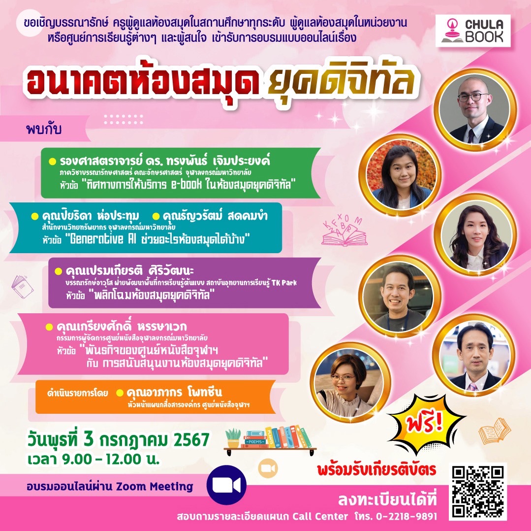 ขอเชิญบรรณารักษ์ ครูผู้ดูแลห้องสมุดในสถานศึกษาทุกระดับ ผู้ดูแลห้องสมุดในหน่วยงานและศูนย์กา…