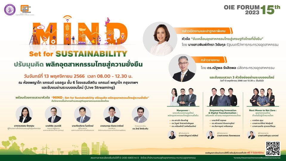13 พฤศจิกายน นี้ ห้ามพลาด !!! งานประจำปีครั้งสำคัญจาก สศอ. OIE Forum 2023 “MIND : Set for Sustainability ปรับมุมคิด พลิกอุตสาหกรรมไทยสู่ความยั่งยืน”