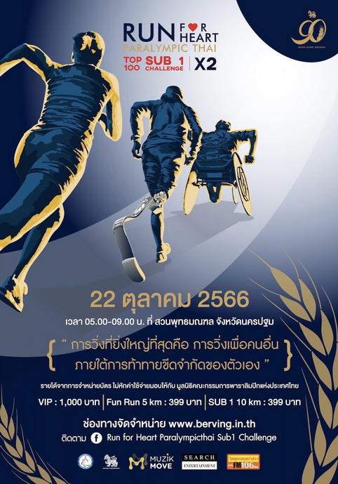 RUN FOR HEART PARALYMPIC THAI SUB1 CHALLENGE X2 เพื่อหารายได้มอบให้ มูลนิธิคณะกรรมการพาราลิมปิกแห่งประเทศไทย ในวันอาทิตย์ที่ 22 ตุลาคม 2566 ที่สวนพุทธมณฑล จังหวัดนครปฐม 10/08/202310/08/2023 กอง บก. จัดขึ้นเป็นครั้งที่ 2 แล้วสำหรับ งานวิ่งเพื่อการกุศล ที่คร… Read More