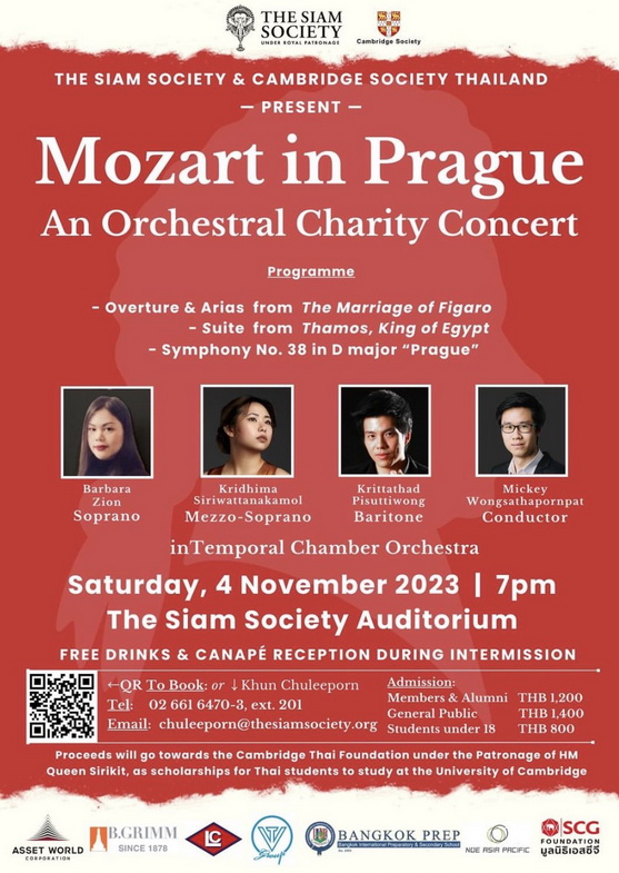 สยามสมาคม ร่วมกับ สมาคมเคมบริดจ์ แห่งประเทศไทย ขอเชิญชวนชมคอนเสิร์ตการกุศล “Mozart In Prag…