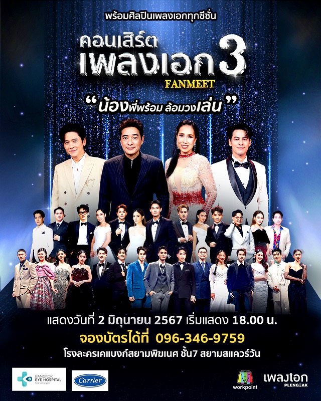 คอนเสิร์ต “เพลงเอก 3 แฟนมีต น้องพี่พร้อม ล้อมวงเล่น” รวมศิลปินเพลงเอกทุกซีซัน จัดแสดงรอบเดียว!