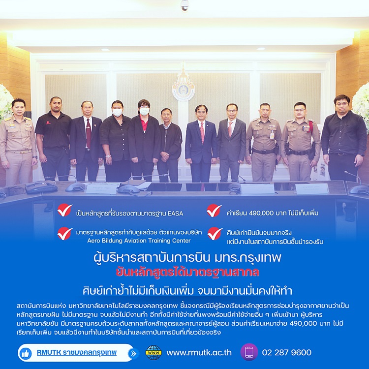 Read Moreผู้บริหารสถาบันการบิน มทร.กรุงเทพ ยันหลักสูตรได้มาตรฐานสากล.. ศิษย์เก่าย้ำไม่มีเก็บเงินเพิ่ม จบมามีงานมั่นคงให้ทำ