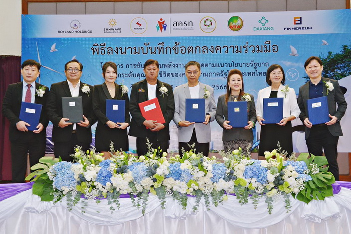 จึงเป็นที่มาในพิธีลงนามบันทึกข้อตกลงความร่วมมือใน โครงการ การขับเคลื่อนพลังงานสะอาดตามแนวนโยบายรัฐบาลเพื่อยกระดับคุณภาพชีวิตของคนทำงานภาครัฐในประเทศไทย ในครั้งนี้ ซึ่งมีตัวแทนสหภาพคนทำงานภาครัฐแห่งประเทศไทย (สครท.) และบริษัทเอกชน อาทิ บริษัท สตรอง (ไทยแลนด์) จำกัด, บริษัท รอยแลนด์ โฮลด์ดิ้งส์ จำกัด, บริษัท ซันเวฟ โซลูชั่น จำกัด, บริษัท ยูนิสตรอง จำกัด, บริษัท ฟินเนเรียม จำกัด, บริษัท ต้าเสียงจำกัด และสมาคมการค้านักธุรกิจสากล (สคส) ลงนามบันทึกข้อตกลงความร่วมมือ และยังได้รับเกียรติจากนายเกริกไกร นาสมยนต์ ผู้ตรวจราชการกรมสวัสดิการและคุ้มครองแรงงาน เป็นสักขีพยาน บรรยากาศภายในงานเป็นไปอย่างอบอุ่นซึ่งแต่ละบริษัทยังได้นำนวัตกรรมพลังงานสะอาดและพลังงานทดแทนมาโชว์ศักยภาพ และยังมีการเสวนาในหัวข้อเสียงแห่งสหภาพ ซึ่งมีเนื้อหา สิทธิและความเท่าเทียม รวมถึง การพัฒนาศักยภาพ ของคนทำงานภาครัฐ อีกด้วย