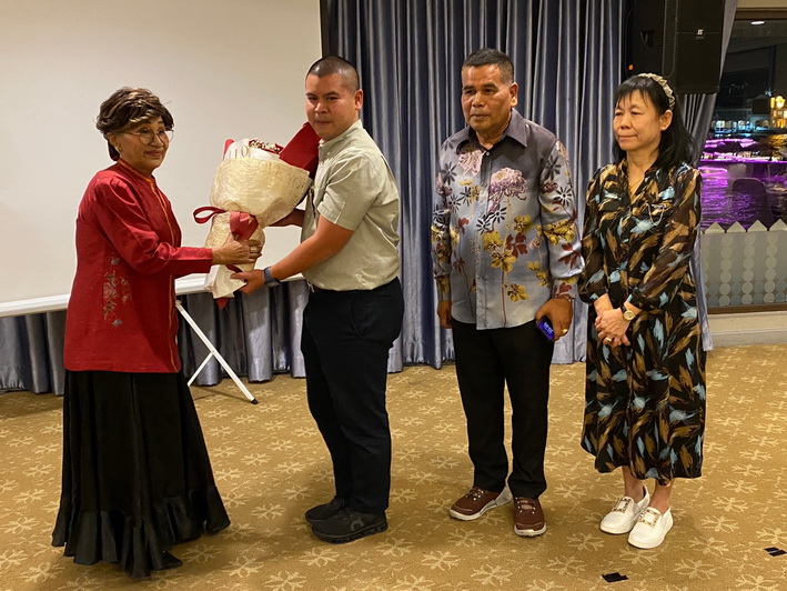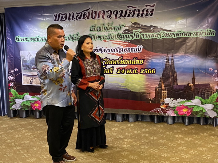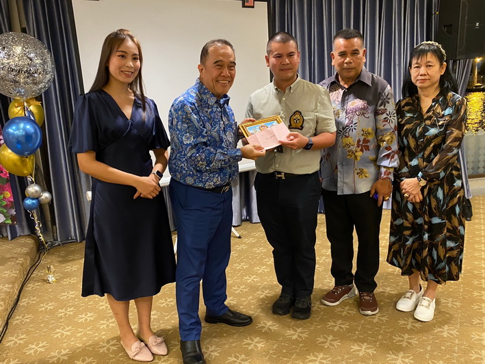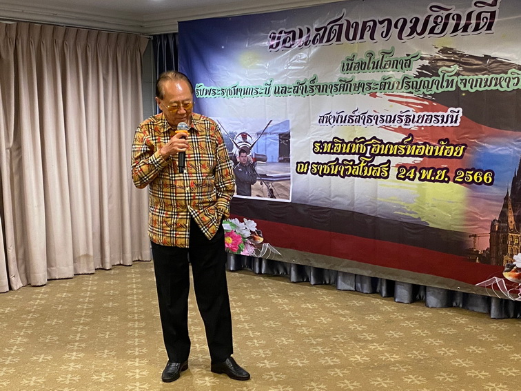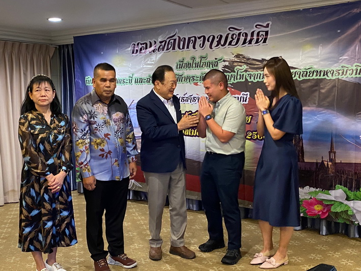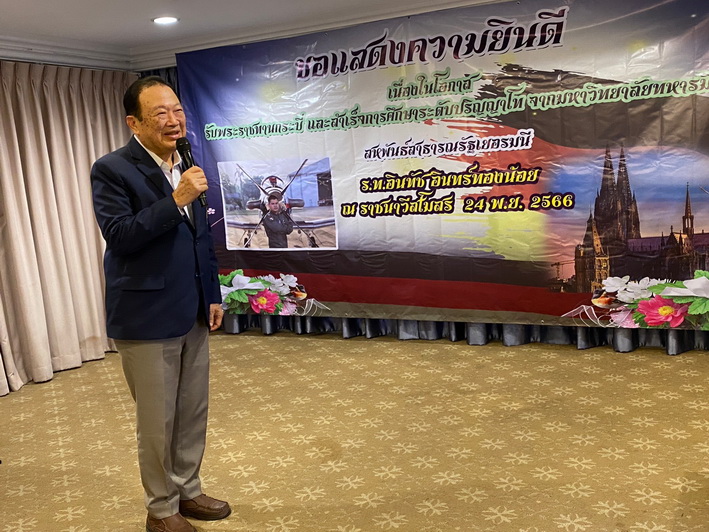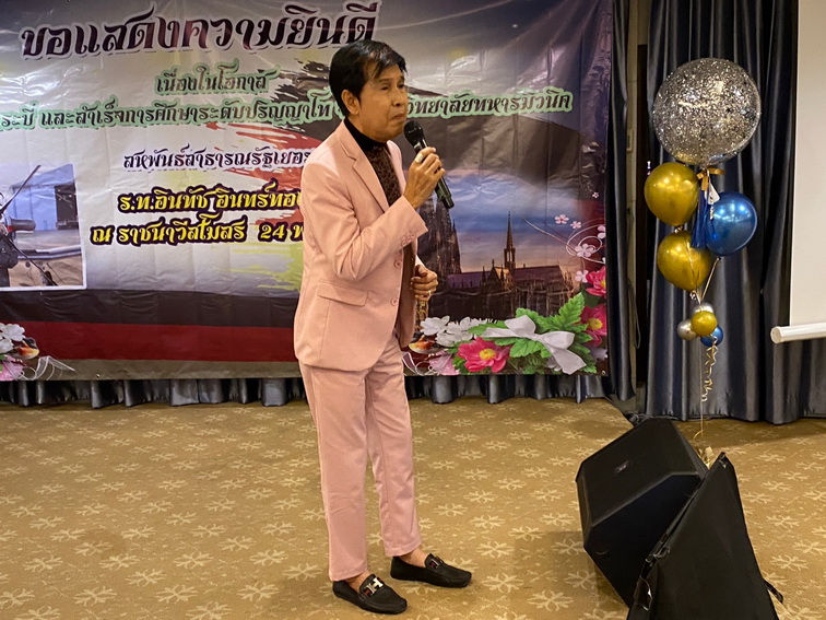 วันที่ 24 พฤศจิกายน 2566 ที่ราชนาวีสโมสร พล.ท.ชุมพร อินทร์ทองน้อย (เสธ.หมี) จัดงานเลี้ยงฉลองรับความสำเร็จ ร.ท.อินทัช อินทร์ทองน้อย บุตรชาย สำเร็จการศึกษาระดับปริญญาโท สาขาวิศวกรรมไฟฟ้าจากมหาวิทยาลัยทหารมิวนิค ประเทศเยอรมนี สุดปลื้ม ภูมิใจในความสำเร็จ พร้อมเพื่อนและแขกผู้มีเกียรติ นายจองชัย เที่ยงธรรม อดีตรัฐมนตรีช่วยว่าการกระทรวงแรงงานและสวัสดิการสังคม อดีตรัฐมนตรีช่วยว่าการกระทรวงคมนาคม อดีตรองเลขาธิการนายกรัฐมนตรี เข้าร่วมงาน