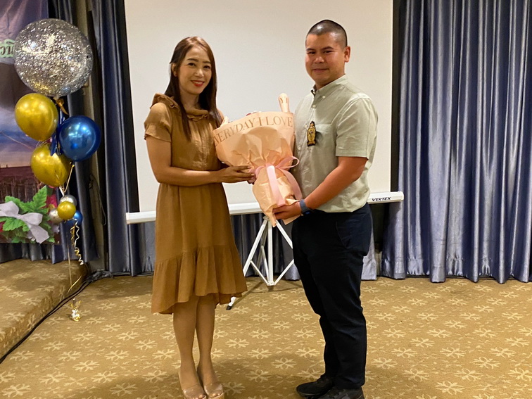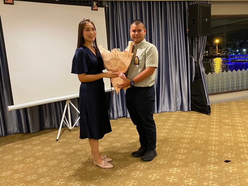 บรรยากาศภายในงานเต็มไปด้วยความคึกครื้น สนุกสนาน มีแขกวีไอพีและเพื่อน ๆ มามอบช่อดอกไม้แสดงความยินดีกันอย่างคึกคัก