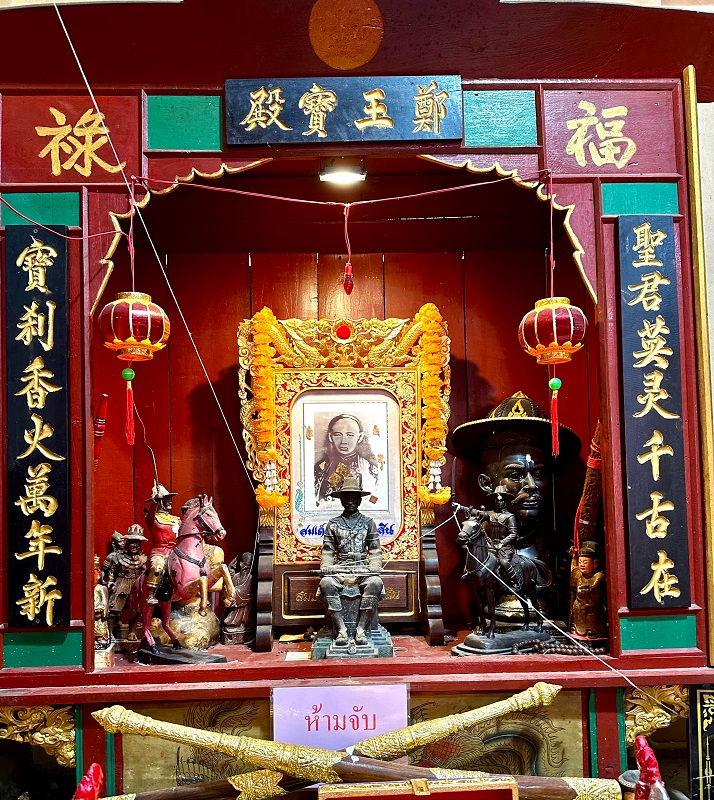 สำหรับ “โบสถ์มหาอุตม์” อาเฮียจุกก็ได้ช่วยกันบูรณะขึ้นมาใหม่เสร็จแล้วให้ชื่อว่า “ศาลเจ้าไท้เพ่งอ๊วงกง” ซึ่งเป็นพระนามเดิมของสมเด็จพระเจ้าตากสินมหาราช แต่ที่สำคัญคือ “พระบรมรูปสมเด็จพระเจ้าตากสิน” ที่แกะสลักด้วยต้นสักขนาดใหญ่ซึ่งขึ้นอยู่บริเวณใกล้ ๆ โบสถ์มหาอุตม์ซึ่งอาเฮียจุกได้ขออนุญาตใช้ต้นสักแกะสลักเป็นพระบรมรูปสมเด็จพระเจ้าตากสินประดิษฐาน ดังนั้นก็มีผู้ศรัทธาได้เข้ามากราบสักการะพระบรมรูปและได้ตั้งจิตอธิษฐาน เช่น เรื่องขอให้ขายที่ดินได้โดยบอกเลขที่โฉนดที่ดินแล้วอาเฮียจุกเล่าต่อว่าแถบจะทุกรายส่วนใหญ่ประสบผลสําเร็จหรือจะสอบเข้ารับราชการทหารก็ประสบผลสําเร็จเช่นกัน
